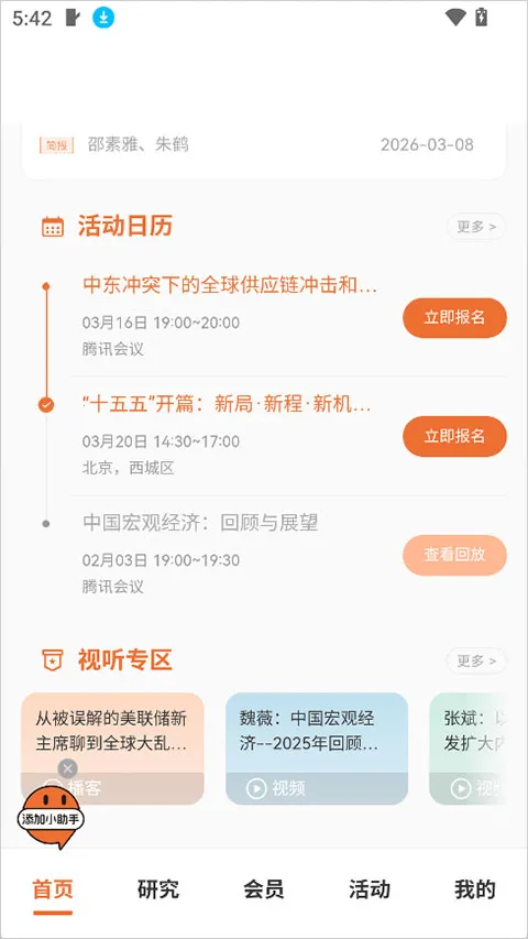 4. 同步核心活动内容,便捷获取独家智库信息。包括闭门研讨会等,使会员第一时间掌握重要资讯。
