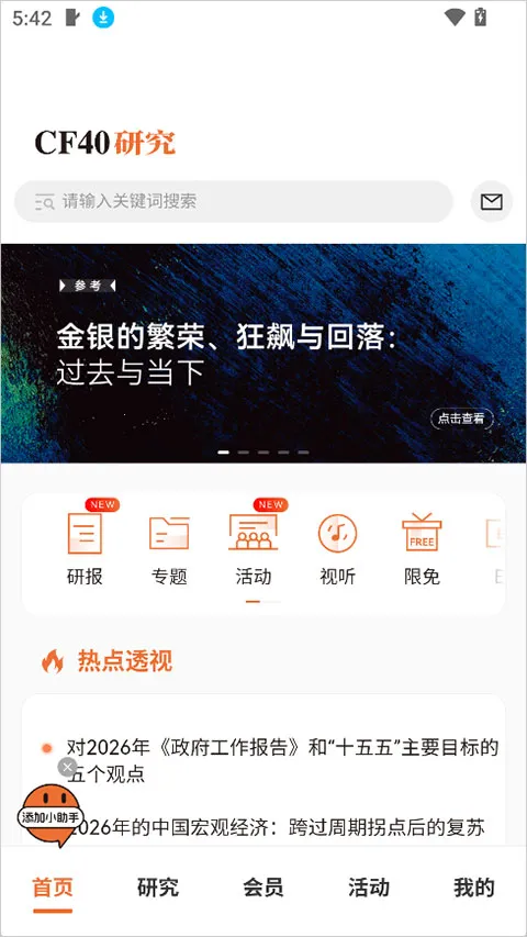 CF40金融40人论坛官方手机客户端,依托顶尖智库资源,以数字化传递专业价值。整合全维度内容,为会员提供高品质服务,涵盖多元功能,适合多类人群,助您洞察行业趋势、辅助决策。
