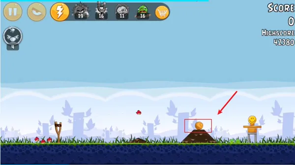 5、第五关就是有点小技巧了,大家需要瞄准图中石板最中间的位置释放小鸟就可以了,切记其他地方不行。