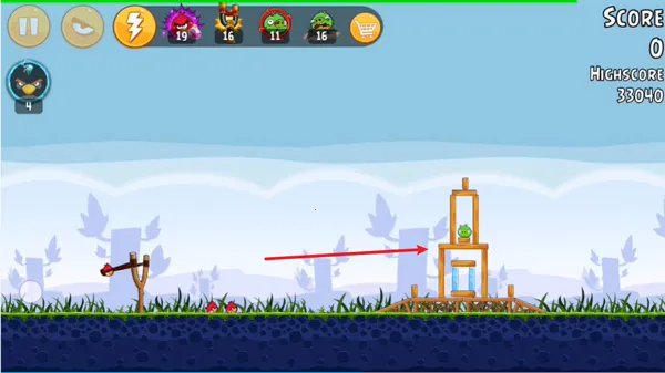1、这第一关是比较经典的一关,游戏开局会送玩家三只小鸟,大家只需瞄准图中木板对角线的位置释放即可完成三星通关。