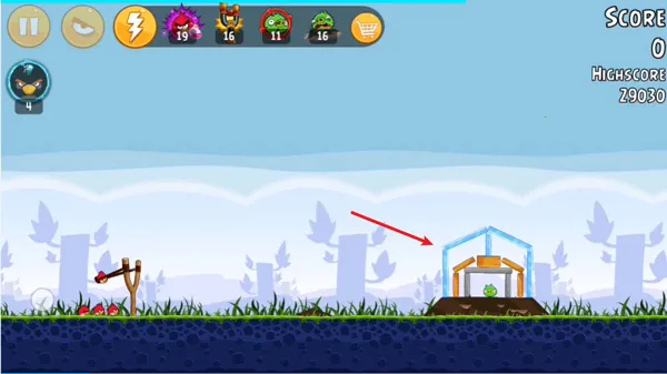 6、第六关全程仅需两只小鸟,过程中瞄准图中冰块最中间的位置就可以了。