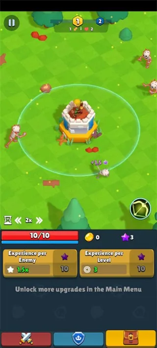 2. 升级成长:可升级弓箭手、塔等提升战力,收集战利品卡片强化自身,合理升级属性发挥强大作用。