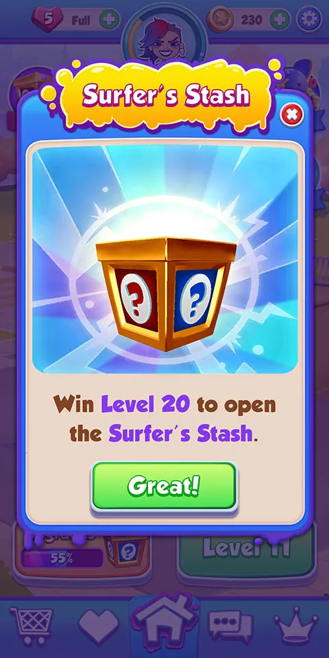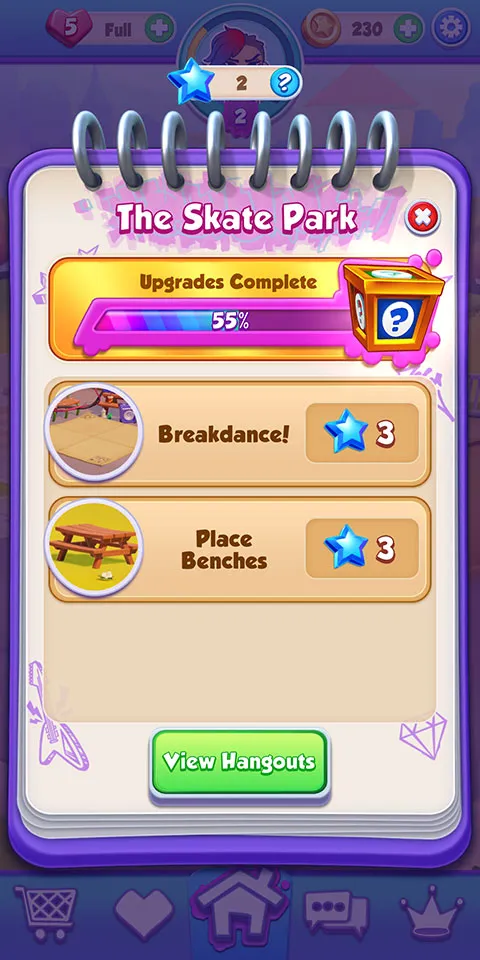 探索并装饰滑板天堂:加入团队旅程,翻新单调休息室,扩展运营基地。通过消除格子解锁独特物品装饰聚会场所。