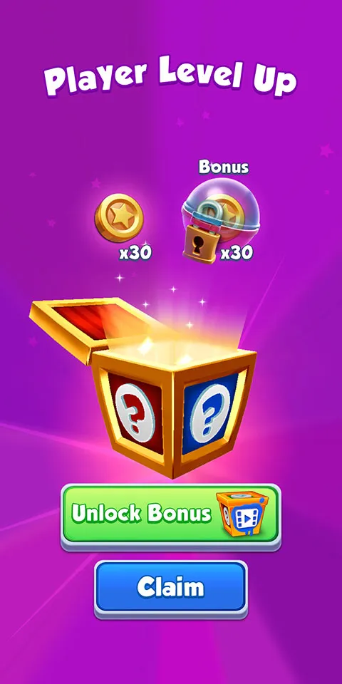 1、第一种方法是升级玩家的等级,每次升级都会获得一个宝箱。升级所需要的经验值可以通过闯关获取。