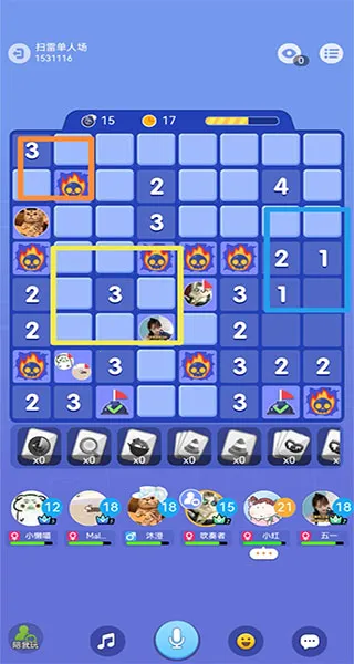游戏中,战斗模式能与全球玩家在线PK,最多支持5人。6种难度需逐步解锁。标记地雷和挖方块的操作简单易懂。而且,通过观察数字判断雷的位置,增加了游戏的策略性。不过,有时会因踩雷、插错旗子或未及时操作而掉血,这也增添了紧张感。在与他人同场竞技时,要分析其他玩家水平,选择合适打法防止被平分。总之,是一款值得一玩的扫雷游戏。