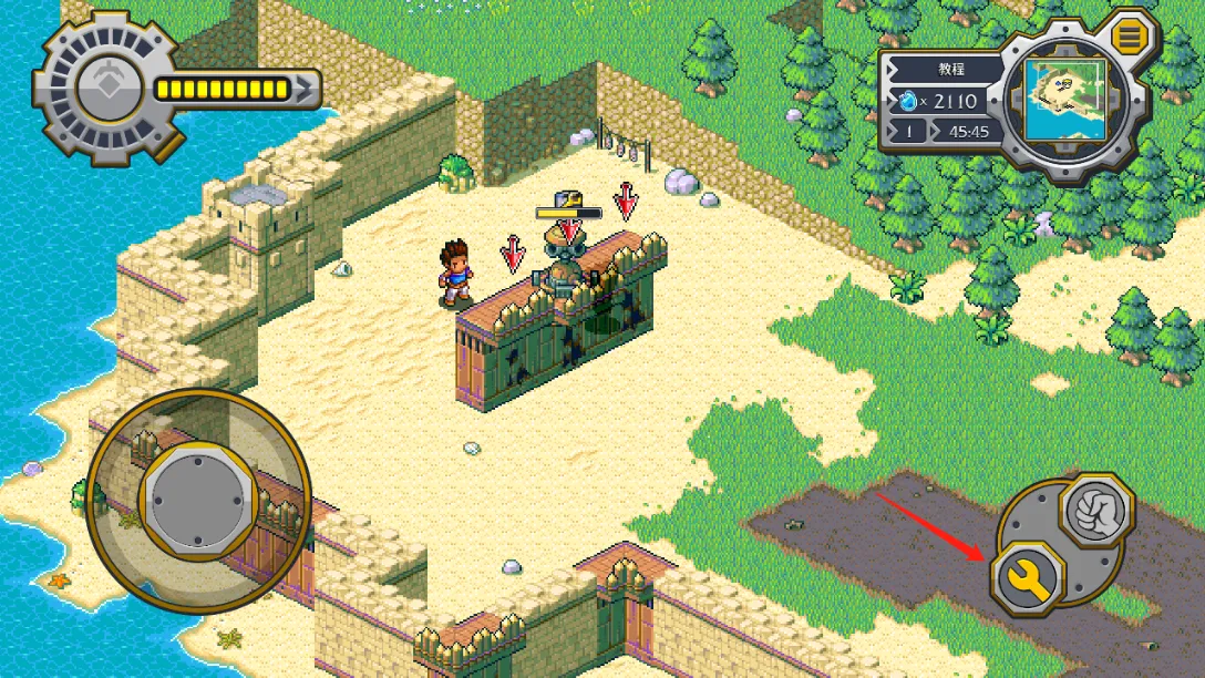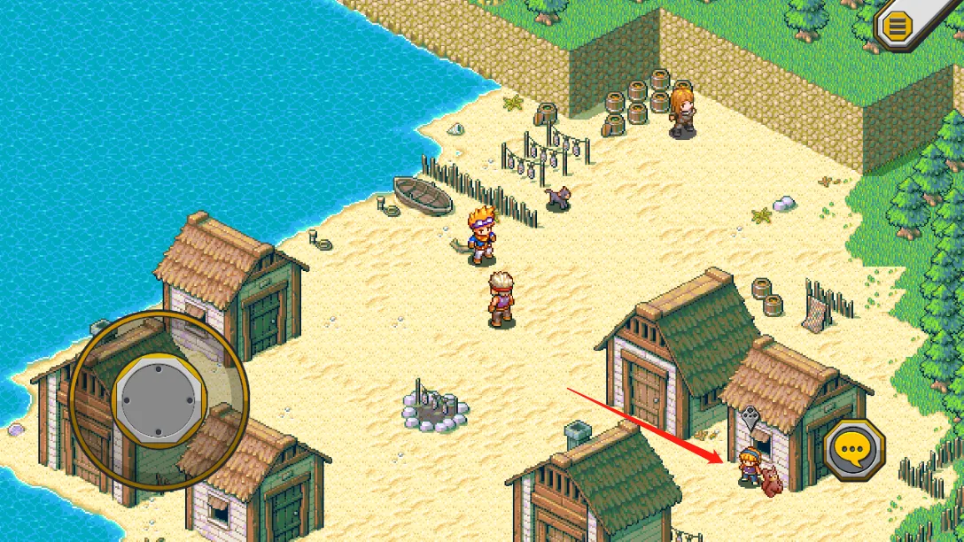 3、正式开始后左边的摇杆控制角色移动,右边的按钮可以和NPC互动。