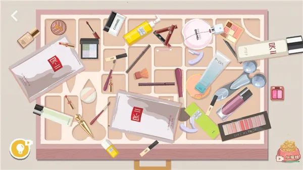 3、所有化妆品放进去之后,剩下粉扑无处安放,点击粉饼盒子打开。