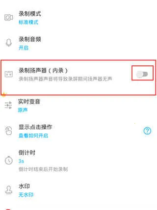 7、需要录制音频的用户,一定要把录制模式功能打开,下方的录制扬声器内录同时也需要打开,这样会录录进声音。