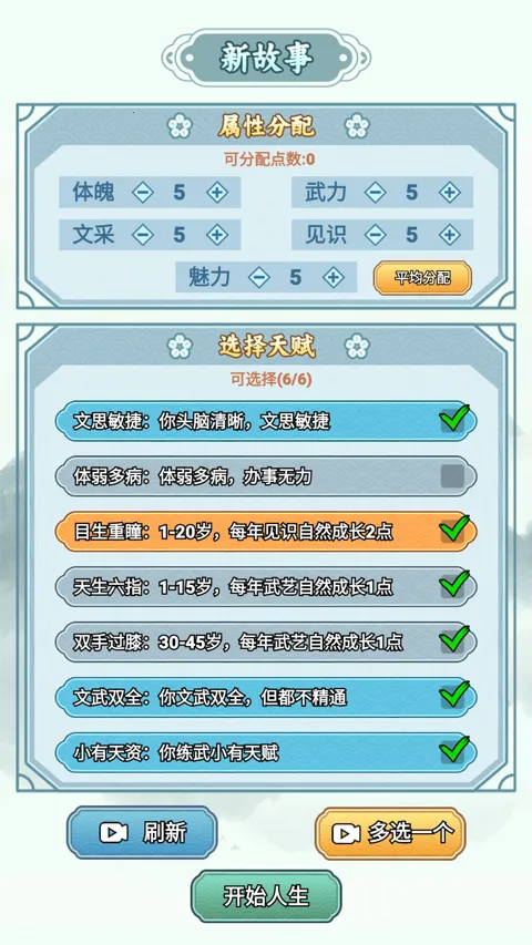 2. 丰富随机事件:深山秘境获上古典籍、村落偶遇能工巧匠、险地救下未来得力族人等,提升角色属性。