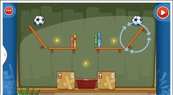 我们只需要将两个木箱重叠放在中间空白处,就可以让球飞过去,获得星星。